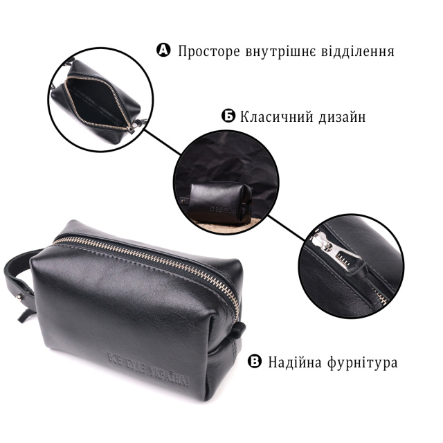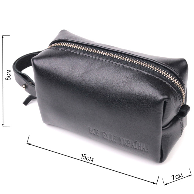 Компактна чоловіча косметичка з натуральної гладкої шкіри з патріотичним тисненням на лицьовій стороні “Все буде Україна”. Аксесуар призначений для зберігання найнеобхідніших дрібниць, які можуть знадобитися будь-де. Завдяки своєму невеликому розміру може легко поміститися в сумку, рюкзак або валізу без особливого дискомфорту. Також аксесуар можна переносити у руці за спеціальну ручку. Запакована ця косметичка в красиву сумку фетрову.