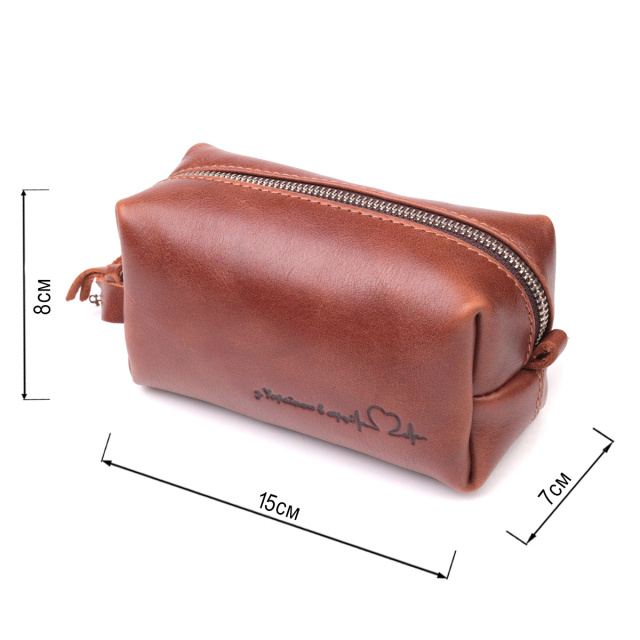 Найзручніша чоловіча косметичка з натуральної гладкої шкіри, з патріотичним тисненням на лицьовій стороні “З Україною в серці”. Аксесуар призначений для зберігання найнеобхідніших дрібниць, які можуть стати в нагоді будь-де. без особливого дискомфорту, аксесуар можна переносити в руці за спеціальну ручку, упакована дана косметичка в красиву фетрову сумочку.