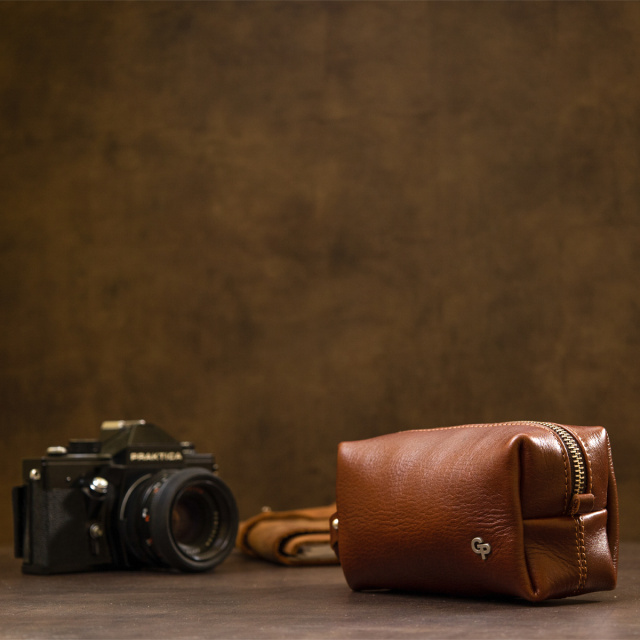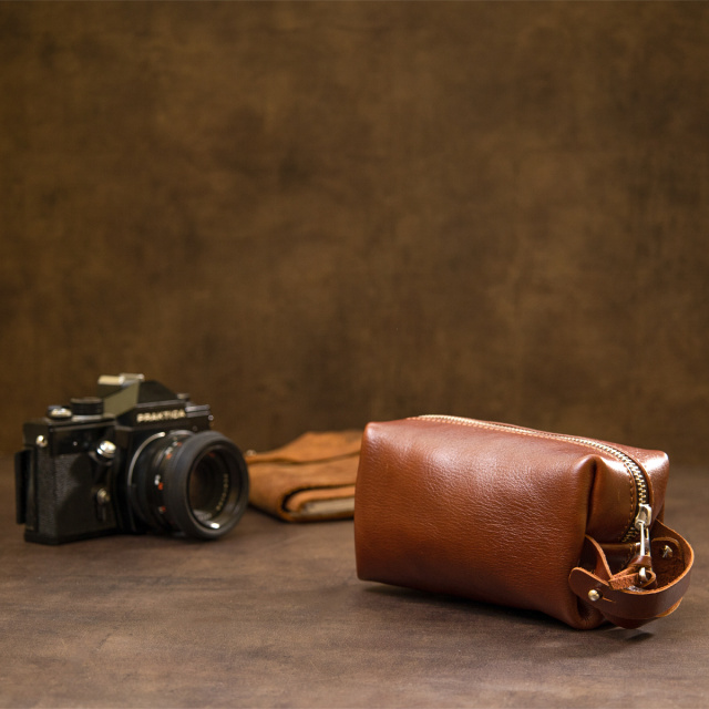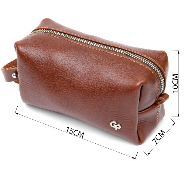 Цікаве рішення для поїздок, адже так часто необхідно взяти з собою невеликі особисті приналежності. Дана косметичка чудово впорається з поставленим завданням, вона виконана з натуральної міцної шкіри і має надійну металеву блискавку. Шляхетний коричневий колір надає їй особливого шарму. Упакована косметичка в фірмовий чохол-сумку.