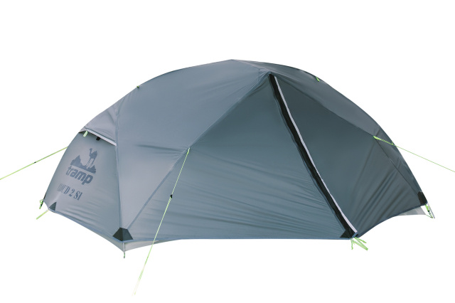 Ультралегкий тримісний туристичний намет хабової конструкції Tramp Cloud 3 Si з силіконізованого Rip-Stop нейлона. Вільностояча хабова конструкція каркасу забезпечує дуже швидке, просте, інтуїтивно зрозуміле встановлення, більший, в порівнянні з наметами інших конструкцій, житловий об'єм спального відсіку та підвищену вітростійкість. Хабова конструкція каркасу намету (HUB) – це коли всі дуги з'єднані одним конектором (хабом), який по'єднує весь каркас намету в одне ціле. Дуги не зміщуються одна відносно іншої і намет гарно тримає форму, його практично неможливо встановити криво чи з перекосом. Додаткова консольна коротка тамбурна дуга збільшує об'єм та висоту тамбурів, а також надає намету більш вітрообтічну форму. Внутрішній намет практично повністю виконаний з сітки, завдяки чому весь об'єм чудово вентилюється. В ньому практично не накопичується конденсат, і вам буде комфортно навіть в жарку літню ніч. Намет пошитий з міцного, підсиленого Rip-Stop плетінням та просоченого силіконом, нейлона з високим рівнем водонепроникності. Завдяки світло сірому кольору тент буде значно менше вигорати на сонці, і довше прослужить, якщо ви часто мандруєте літом чи в спекотних країнах.