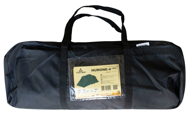 Двокімнатний намет Totem Hurone 4 (V2) розрахований на комфортне розташування 4 людей, котрі, завдяки двом окремим входам і великому тамбуру, не будуть заважати один одному. Входи продубльовані протимоскітними сітками. Приміщення мають великі вентиляційні вікна. Внутрішній матеріал намету 100% дихаючий нейлон. Дно намета виготовлено з міцного та надійного терпаулінга.