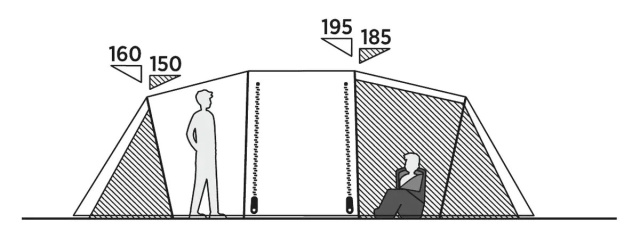Намет Leka Twin 6 - підходить як для друзів, так і для великих сімей. Він має універсальний дизайн з просторою вітальнею та окремими спальнями з кожного кінця. Вікна з перемикачами-шторками з обох боків та два входи забезпечують достатньо світла та доступності. Внутрішній намет SleepTight забезпечує комфортний сон, а крита вентиляція з обох кінців дозволяє регулювати потік повітря. Фіксатори для відтяжок та висота у повний зріст в житловій зоні підвищують зручність та комфорт.