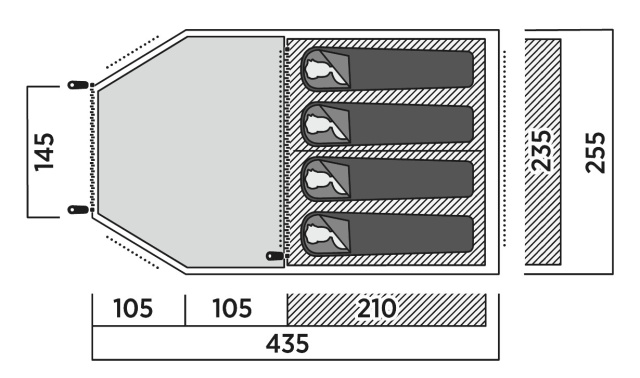 Намет Hidra 4 – це тунельний намет із великою верандою зі знімним підлоговим покриттям, вікнами з обох боків із шторами-перемикачами та регульованим потоком повітря з повністю відкритою або закритою задньою вентиляцією. Передня крита вентиляція та висота стояння в житловій зоні підвищують комфорт. Внутрішній намет SleepTight забезпечує спокійний сон. Підлогове покриття можна не виймати, щоб зменшити вагу та розмір у складеному вигляді, що робить його універсальним та зручним для велосипедних та мотоциклетних пригод.