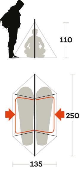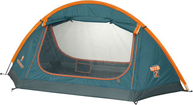Намет двомісний Ferrino MTB 2 Blue (99031MBB) належить до серії трисезонних наметів Ferrino. Ця модель створена переважно для велотуризму. Велосипедисти та шанувальники легкохідного туризму рідко мають велику кількість спорядження, звертаючи увагу на легкі й компактні намети. Саме тому дана модель позбавлена тамбурів для спорядження (велорюкзак можна вільно розмістити всередині намету), а основний акцент зроблений на мінімальній вазі, розмірі, простоті та швидкості встановлення. Особливо зручним є те, що за мінімальної ваги намет має два окремих входи, надаючи можливість комфортно користуватися ними, не обмежуючи один одного. Водночас вхідні двері, зафіксовані трекінговими палицями або відтяжками, можуть слугувати навісом, а торцеві отвори виконують функцію вентиляційних вікон. Ступінь водозахисту цілком достатній, щоб за умови правильної установки зберегти намет сухим всередині під час дощу. Чохол має компресійні стяжки, що також дає змогу досягти досить компактних розмірів упакованого намету.