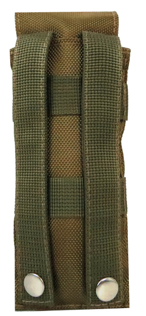 На зворотному боці розташовані дві петлі на механічних кнопках для можливості підвішування системою Molle.
