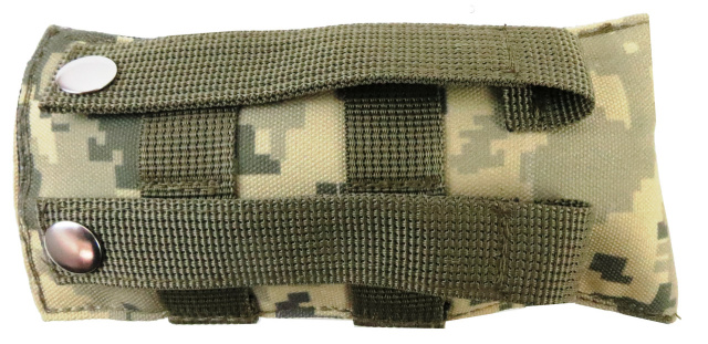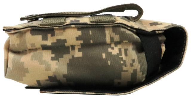 Два відділення для одного автоматного ріжків АК закривається клапаном на липучці, є додаткова еластична стяжка для надійної фіксації ріжків.