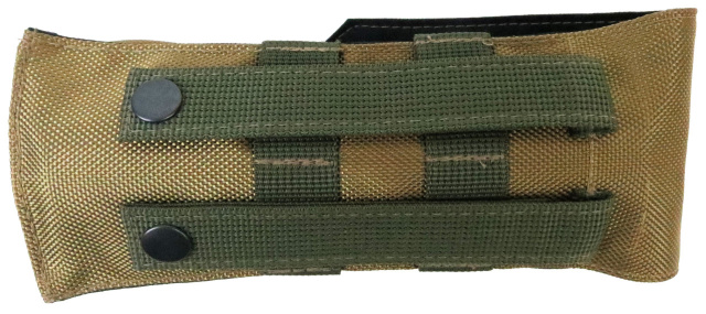 На зворотному боці розташовані дві петлі на механічних кнопках для можливості підвішування системою Molle.
