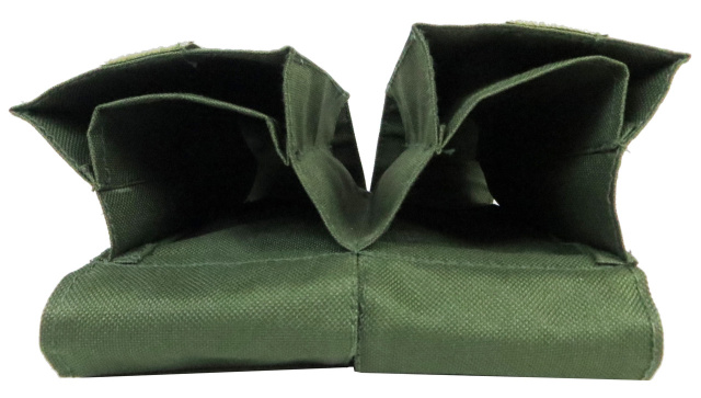 Два автономні відділення, які всередині розділені перегородками для чотирьох автоматних ріжків АК закривається клапанами на липучці.