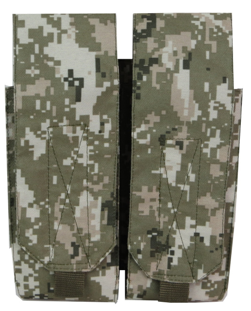 Два автономні відділення, які всередині розділені перегородками для чотирьох автоматних ріжків АК закривається клапанами на липучці.
