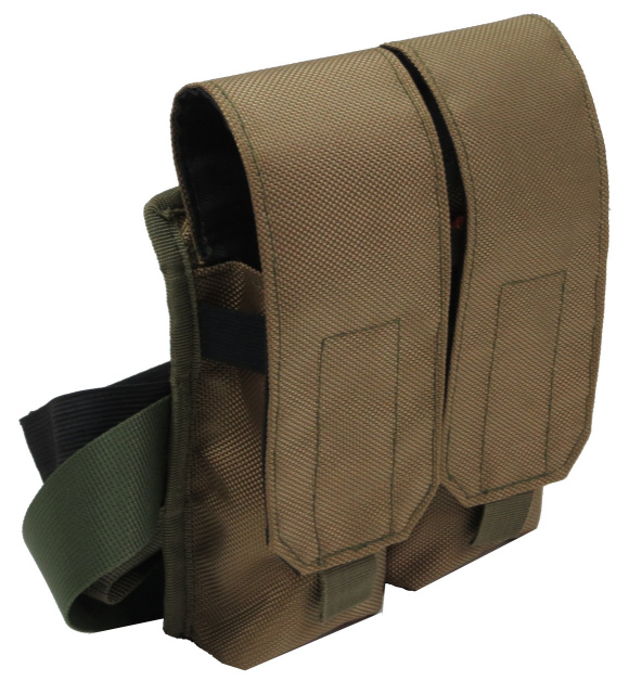 Два автономні відділення на клапані з липучкою. У кожне відділення поміщається один автоматний ріжок для АК закривається клапаном на липучці, є додаткова еластична стяжка для надійної фіксації ріжка.
