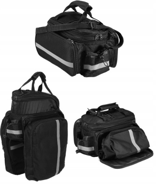 Багатофункціональна подвійна велосипедна сумка, кріпиться до багажника. Вона чудово підійде як сховище для велосипедних інструментів, дрібниць корисних у подорожі, одязі, карт або запасі продуктів.