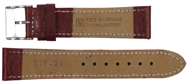 Ремінець для годинника зі шкіри Mykhail Ikhtyar Ш20 мм бордовий S718-20S bordo