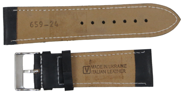 Ремінець для годинника з натуральної шкіри Mykhail Ikhtyar шириною 24 мм чорний S659-24S black